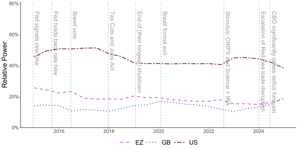 We quantify geoeconomic competition in global FX funding by measuring how one country's funding inflow responds to another country’s actions, which we call ``reallocation exposure.'' We use reallocation exposure to construct time-varying measures of geoeconomic power and characterize the network of financial competition and cooperation.